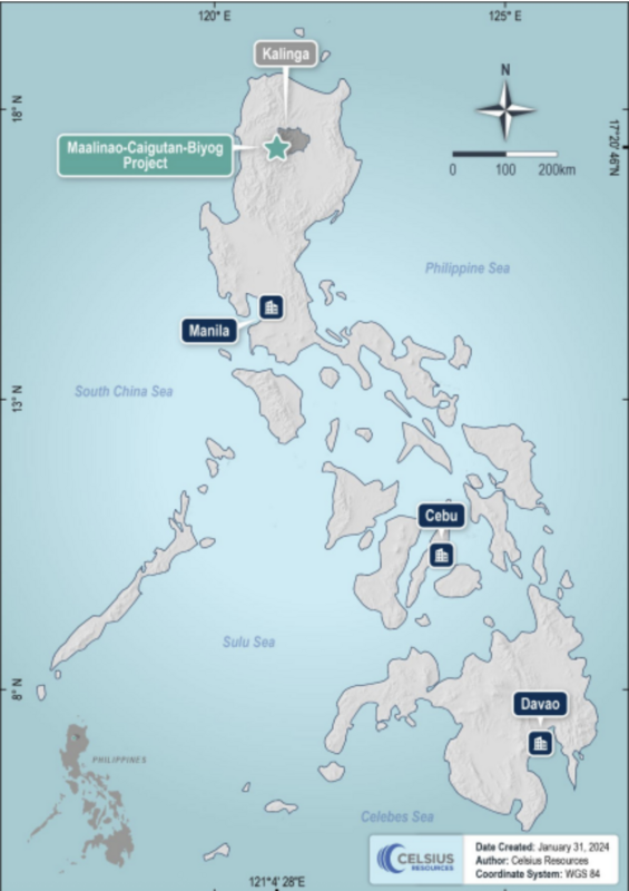 The MCB Project, located in the Cordillera Administrative Region about 320 kilometers north of Manila, is the flagship project of Makilala Mining Company, Inc., Celsius’ Philippine affiliate. An updated JORC-compliant Mineral Resource Estimate announced in December 2022 identified 338 million tonnes of ore at 0.47% copper and 0.12 g/t gold, containing 1.6 million tonnes of copper and 1.3 million ounces of gold.