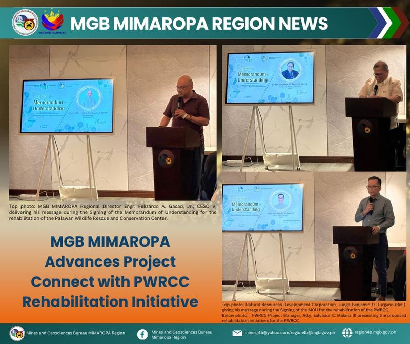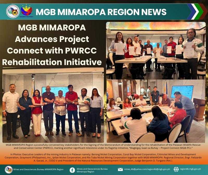 The Mines and Geosciences Bureau (MGB) MIMAROPA Region has formalized a multi-stakeholder effort to rehabilitate the Palawan Wildlife Rescue and Conservation Center (PWRCC), marking a key milestone under its flagship “Magbigay Gaan sa Buhay – Project Connect.”